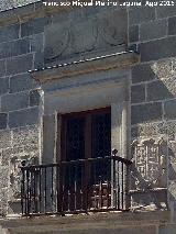 - En la planta superior se disponen tres balcones, rematados con escudos.